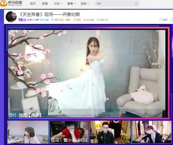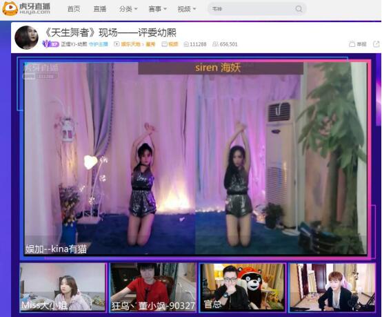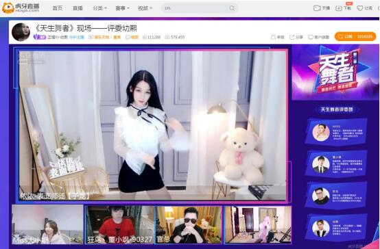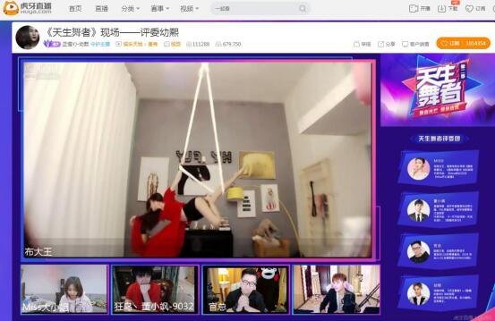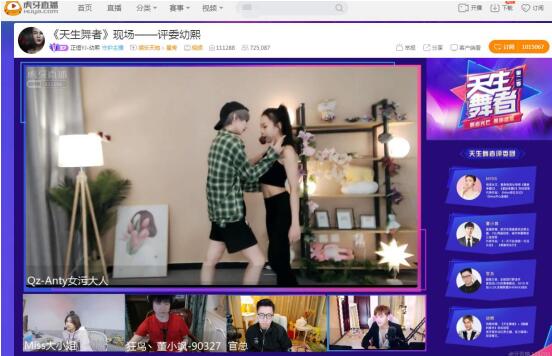 3月21日,虎牙直播《天生舞者》第二季踢馆赛拉开序幕,Miss大小姐,董小飒,官总、幼熙四位大咖主播坐阵评委席。踢馆赛战火燃起,六位参赛主播们、三位踢馆选手火光四射,为观众们带来了一场激烈的舞蹈盛宴。